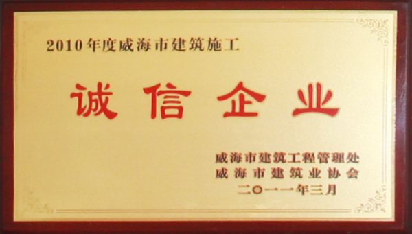 公司連續(xù)八年榮獲威海市“誠信開發(fā)企業(yè)”、“建筑施工誠信企業(yè)”,連續(xù)九年被評為威海市級“守合同重信用企業(yè)”,多次被評為威海市“市級文明單位”、“質(zhì)量管理先進(jìn)企業(yè)”、 “安全管理先進(jìn)企業(yè)”,乳山市“優(yōu)秀企業(yè)”、“先進(jìn)民營企業(yè)”、“納稅明星企業(yè)”,在社會上逐步樹立了誠信、穩(wěn)健的企業(yè)形象。